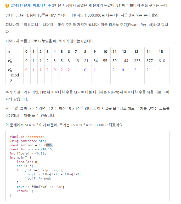 Answer[N] = Answer[N%P] 와 같다는것을 알수가 있다. 예를들어
