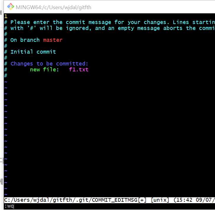 git f1.txt만 했을 경우 다음과 같이 된다.