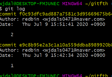 그리고 commit을 사용하여 등록한다.(버전 2라는 의미를 commit 메세지로 등록한다.)