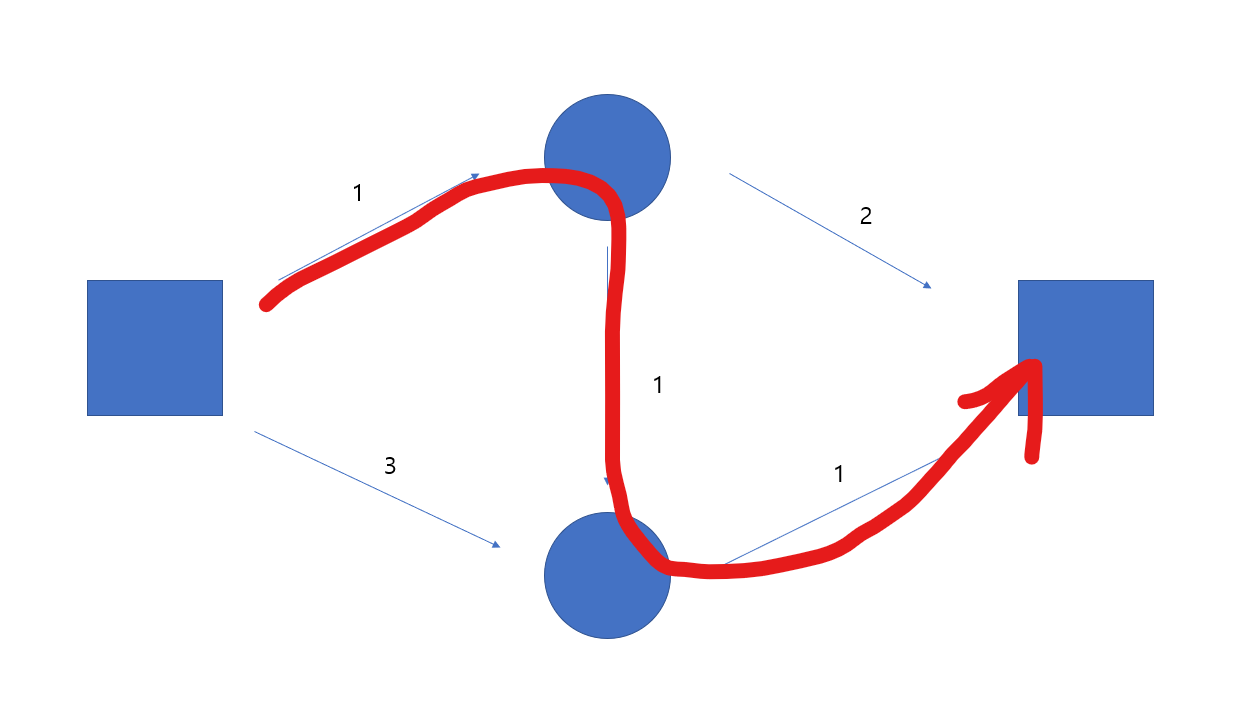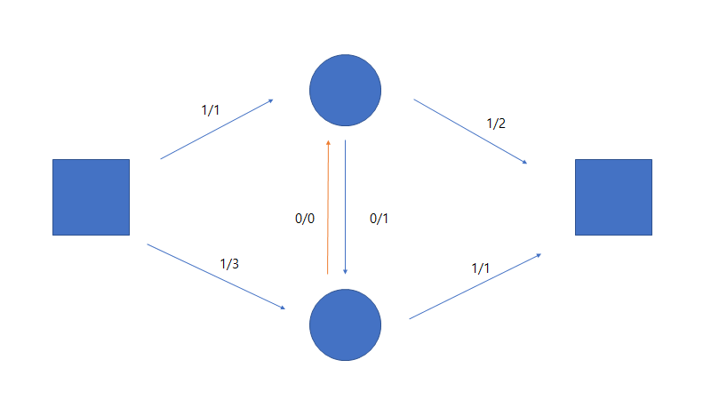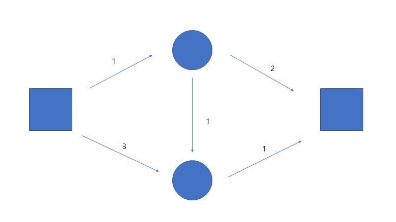 우린 여기서 중간의 원형 도형에서 위에서 아래로 flow가 1만큼 간다는 것을 확인 할수 있다.