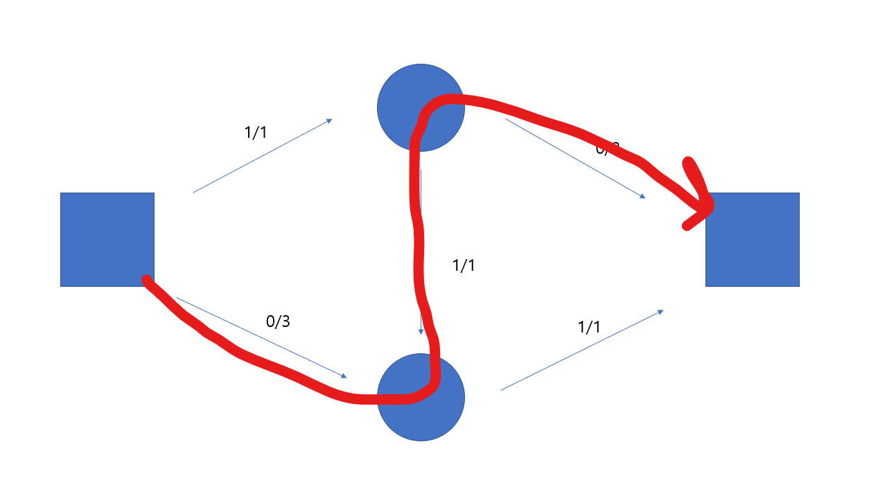 1.모든 간선의 유량을 0으로 초기화한다. ( 시작할 때는 어떠한 유량도 없기 때문에)