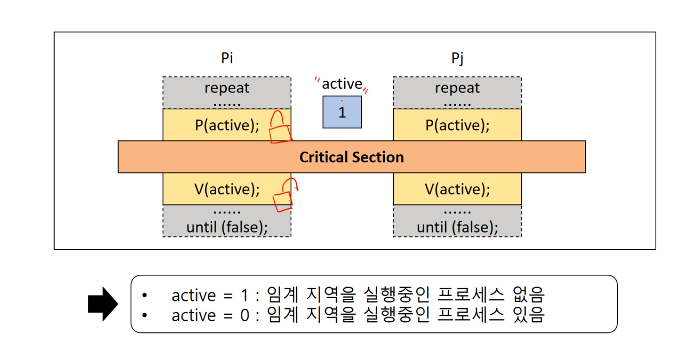 초기화, P() , V() 연산으로만 접근 가능