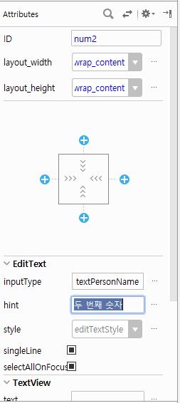 그리고 연산의 결과를 담을 수 있도록 TextView를 추가해줍니다.