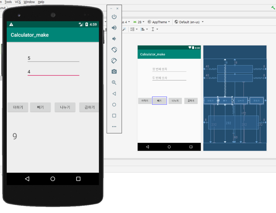 메인 엑티비티로 돌아와서 사칙연산에 대한 함수를 만들어 줍니다.
