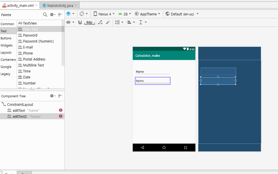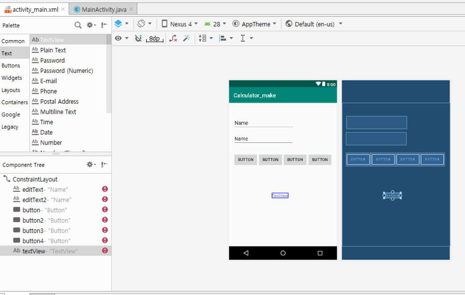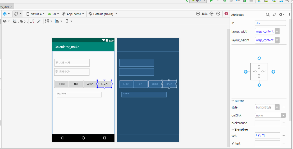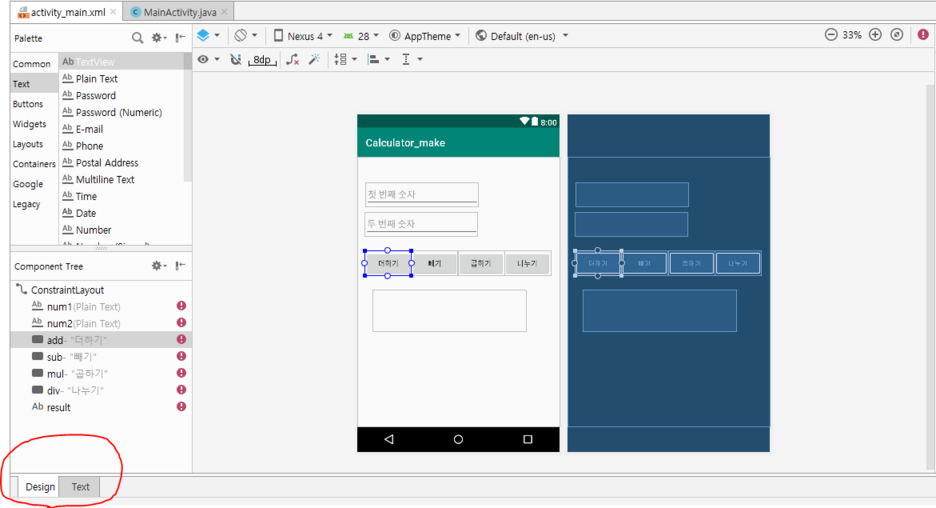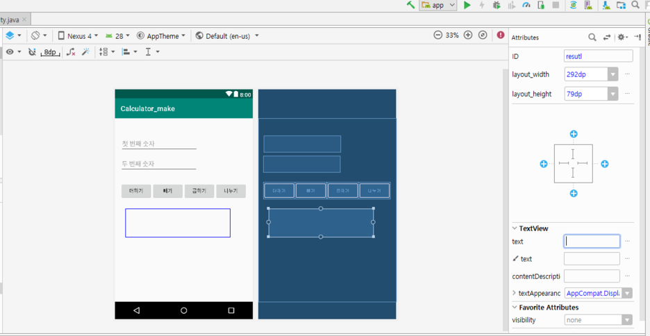 그리고 연산의 결과를 담을 수 있도록 TextView를 추가해줍니다.