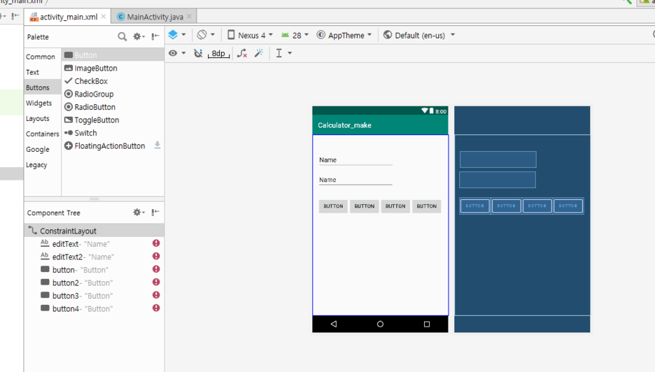사칙연산을위해 Button탭에 4개의 버튼을 추가해줍니다.