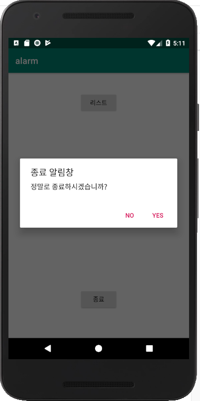 alert.setTitle("종료 알림창");