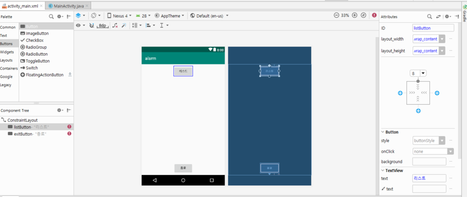 위에 버튼의 이름을 리스트로 해주고 ID는 listButton으로 설정해준다