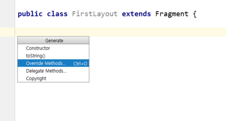 onCreateView를 선택해줍니다.