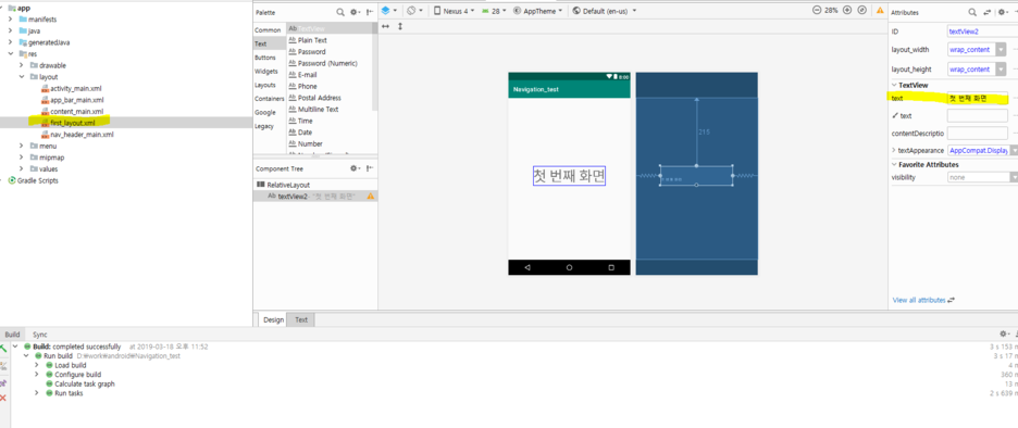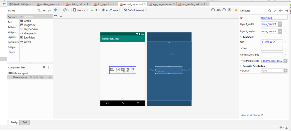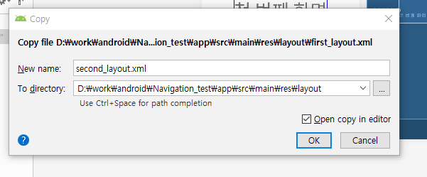 첫 번째 화면이라고 만든다음 해당 레이아웃을 복사후 붙여넣기를 통해서 두번째 레이아웃도 만듭니다.