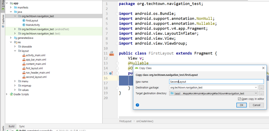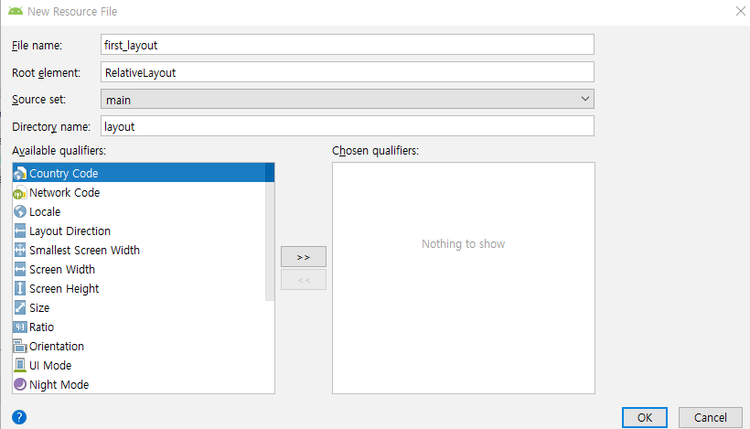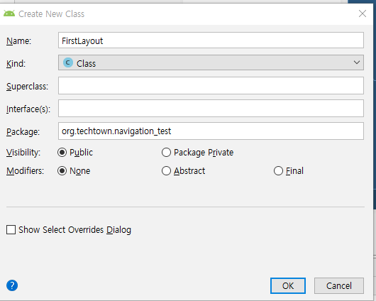 이름을 FirstLayout으로 만들어줍니다.