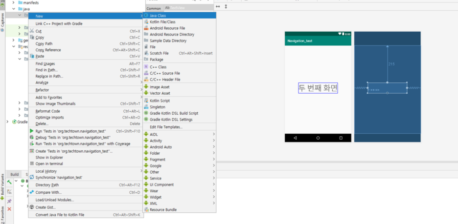 이제 화면 전환에 사용될 레이아웃을 추가해주도록 하겠습니다.