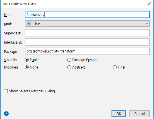 activity의 이름은 SubActivity로 해줍니다.