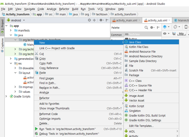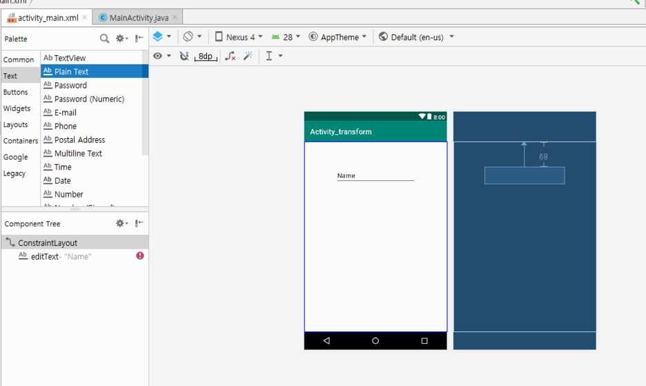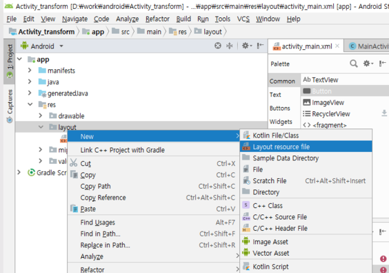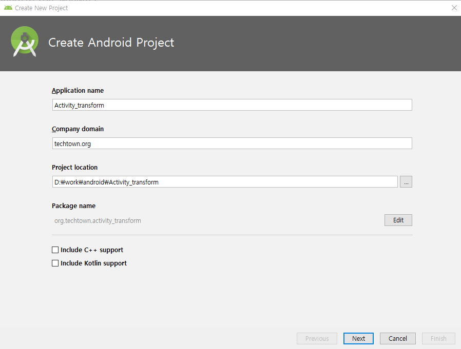 프로그램 이름은 Activity_transform으로 하겠습니다.