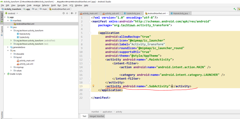 sub activity로 이동해줍니다.