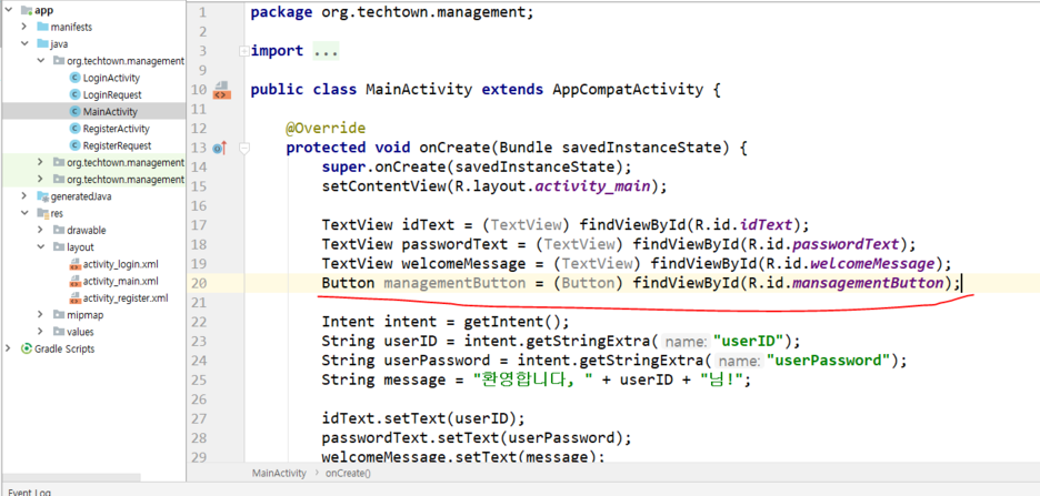 Button managementButton = (Button) findViewById(R.id.managementButton);