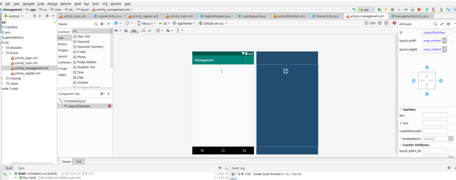 management 레이아웃에서 userListTextView의 text view를 생성해줍니다.