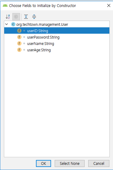 GEtter and Setter 기능을 이용해서 각각의 생성자도 만들어줍니다.