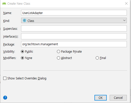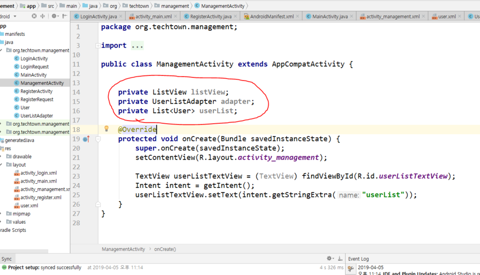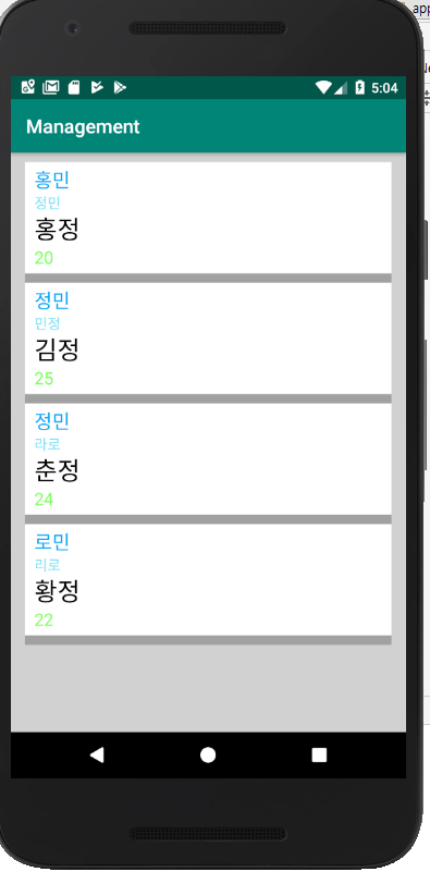 managementActivity로 와서 방금만든 userListAdpater를 사용해봅니다.