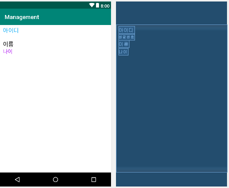 위에 처럼 레이아웃을 꾸미면 이젠 각각의 사용자의 정보를 어떻게 넘겨줄지에 대한 레이아웃을 만들어줍니다.