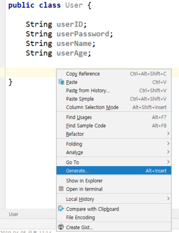 //생성자 생성