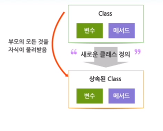 상속 = 부모로부터 물려받은 공통적인 특징 + 자식 클래스에서만 가지는 추가적인 특징