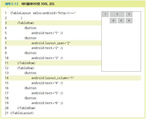 ○ 열의 개수는 <TableRow> 안에 포함된 위젯의 개수로 결정