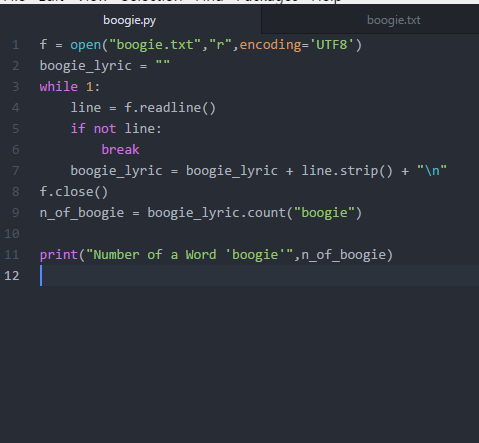 저는 boogie 라는 단어가 몇번 나오는지 카운트를 할려고합니다.