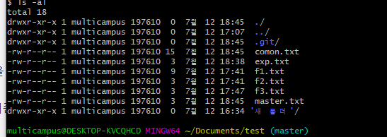 git exp에서 comon.txt 를 만든다음 master에서 exp를 merge한다. 그럼 위아같이 comon.txt를 공통으로 가지게된다.