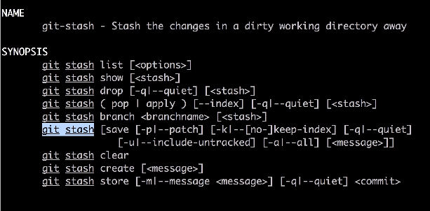 git stash --help