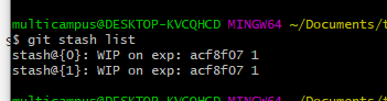 다시하면 git stash apply 를이용해서 스택처럼 두개를 적용할 수있다.