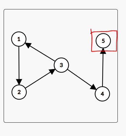 위의 그림처럼 5번을 제외한 나머지 노드들은 강한 연결요소가 아니다 1->2->3 은 강한 연결요소인것 같지만