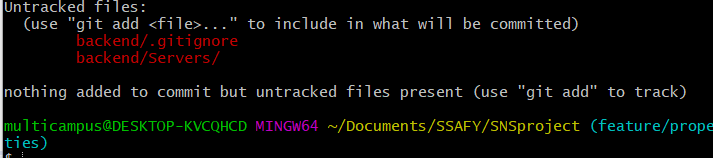 git status 를 사용햇을때 다음과 같은 화면이 뜬다