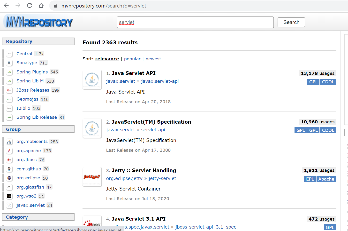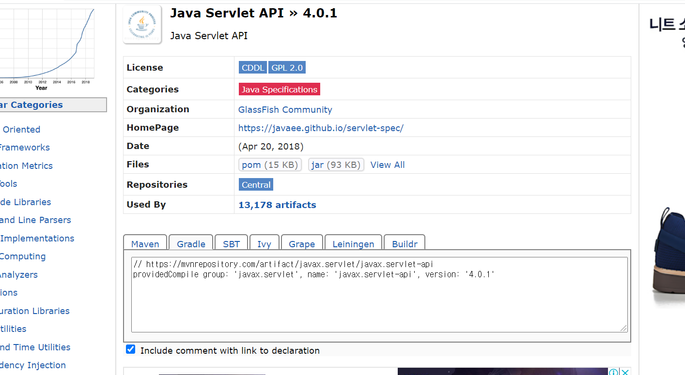 Servliet API의 적절한 버전을 선택하여서 위의 값들을 추가해주도록 하자