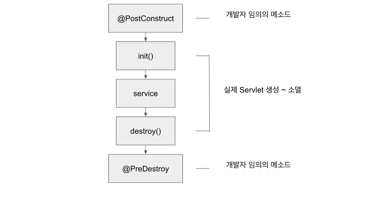 초기화 단계에서는 로드한 서블릿의 인스턴스(객체)를 생성하고 리소스를 로드하는 등 클래스 생성자의 초기화 작업과 동일한 역할을 수행한다. 서비스 단계에서는 클라이언트의 요청에 따라서 호출할 메서드를 결정한다.