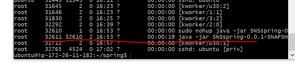 nohup java -jar SNSspring-0.0.1-SNAPSHOT.jar &