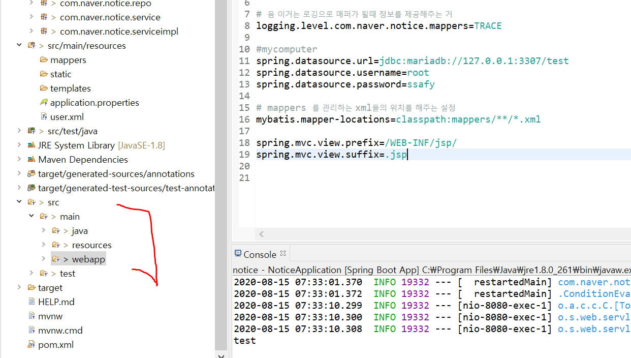 기본적으로 claspath 가 src->main 이라면 webpage 를 보여주는것은 webapp아래에서 관리를 하게된다.