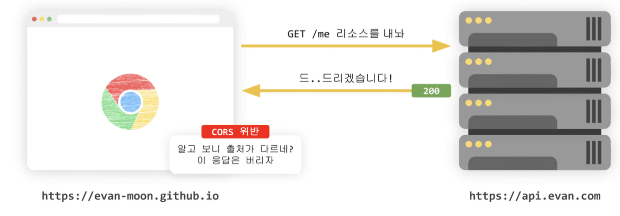 재밌는점은 여기서 출처를 비교하는 로직이 서버에 구현된 스펙이 아니라 브라우저에 구현되어 있다는점이다.