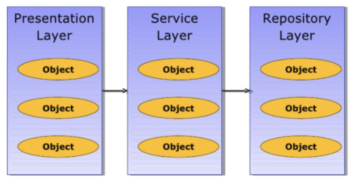 계층을 분리하는 구조이다. 한 곳에서 모든 작업이 한꺼번에 이루어진다면 코드의 복잡성 증가, 유지보수의 어려움과 유연성 부족, 중복 코드의 증가, 낮은 확장성등 문제가 발생하기 때문이다.