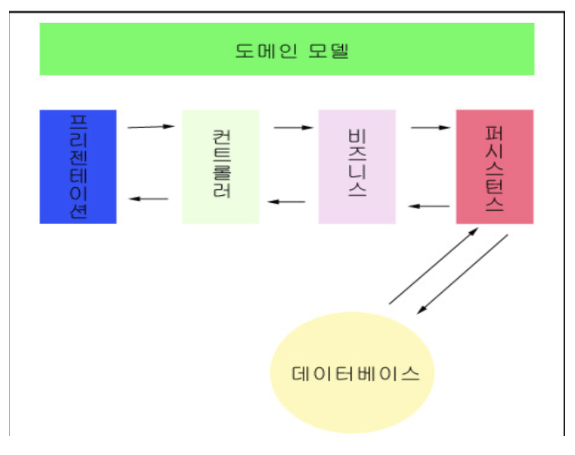 모델계층 은 비즈니스 계층과 퍼시스턴스 계층을 합친 계층이다.(입력,조회,수정,삭제를 담당한다.)