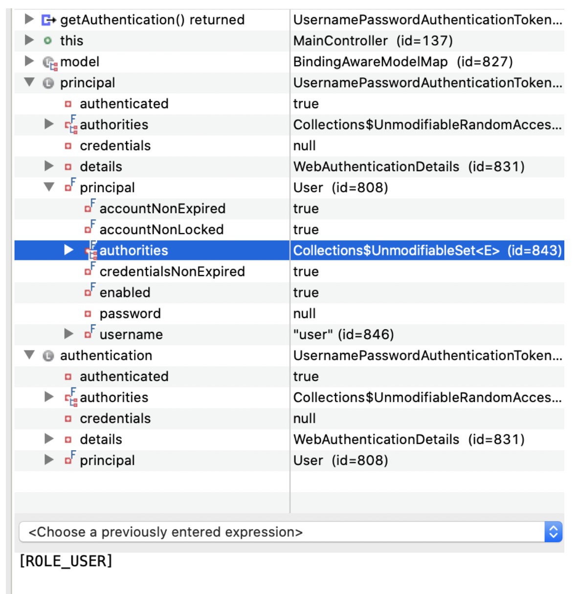 인증 후에는 Principal 값이 ROLE_USER 로 바뀌어 있었다..