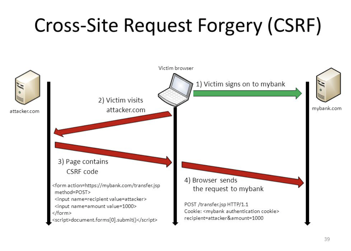 - 위조 요청을 전송하는 서비스(은행,네이버,페이스북)에 희생자가 로그인 한 상태