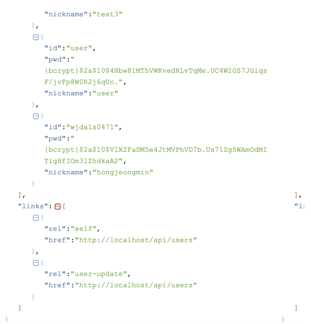 다음과 같이 어떤 특정 콘텐츠안에 _links라는 항목안에 여러 링크들을 자동적으로 추가해준다.