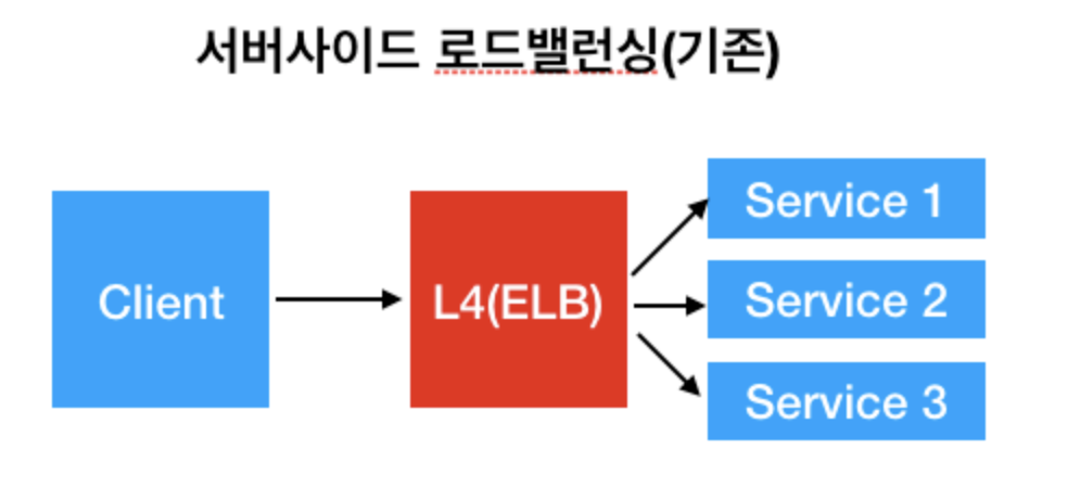 우리가 일반적으로 사용하는 LoadBalancer는 서버사이드 로드밸런싱을 처리하는 L4 Switch와 같은 하드웨어 장비입니다. 하지만 MSA에서는 이런 장비보다는 소프트웨어 적으로 구현된 클라이언트사이드 로드밸런싱을 주로 이용합니다.