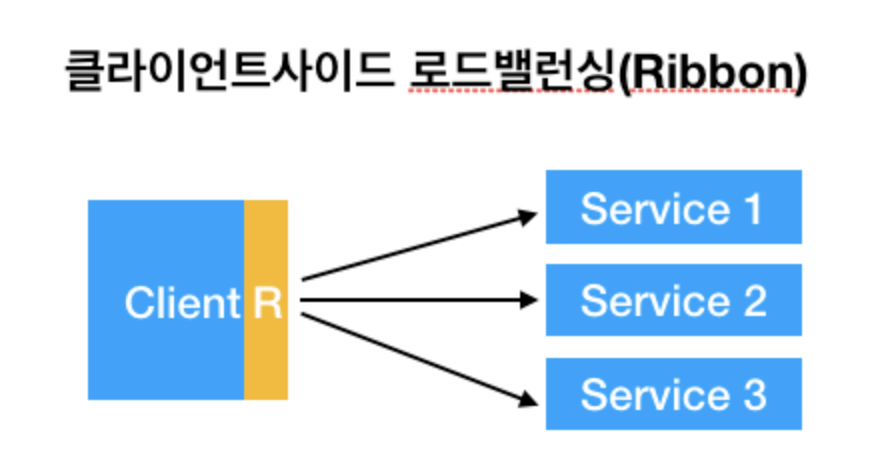Spring Cloud에서는 위와 같은 클라이언트 사이드 로드밸런서로 Ribbon을 이용하고 있다.