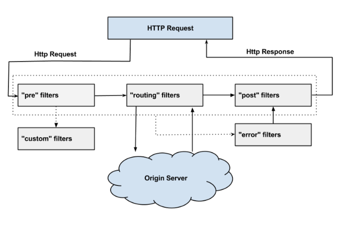 ROUTING Filter - 요청에 대한 라우팅을 다루는 필터이다. Apache httpclient를 사용하여 정해진 Url로 보낼수 있고, Neflix Ribbon을 사용하여 동적으로 라우팅 할 수도 있다.