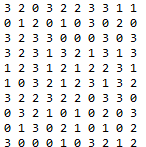 System.out.printf("%d ",myList[i][j].size());