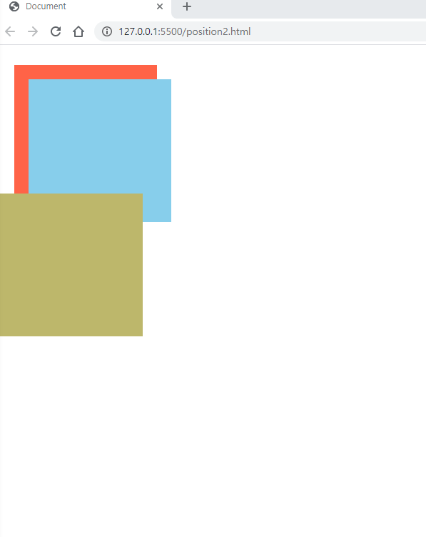 layout2는 그대로이지만 겹치는 이유는 기준점이 되는 애가 relative인 녀석의 이동하기 전이 기준이 된다.