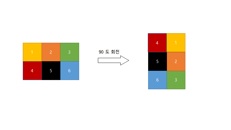 바로 배열이 회전하면서 배열의 크기가 달라진다는 것이다. 따라서 왼쪽 배열을 회전한다고 했을때 새로운 배열을 선언하고 각 요소에맞게 숫자를 넣으면 손쉽게 회전을 표현 할 수있다.