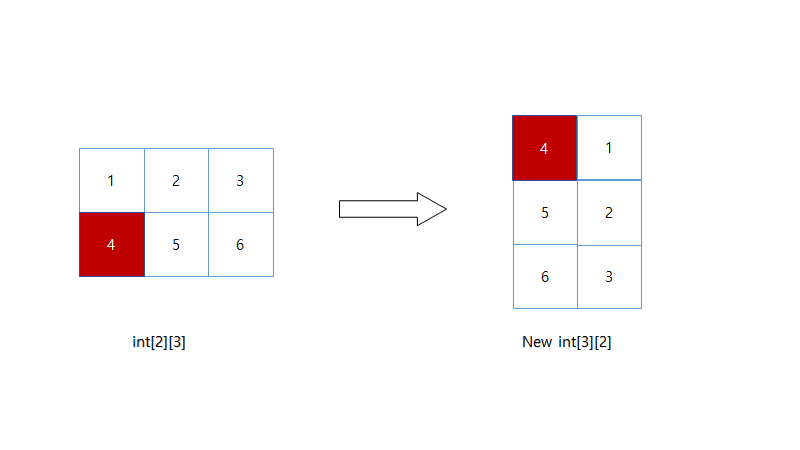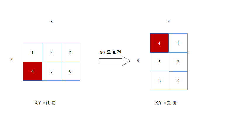 배열의 인덱스는 0부터 시작한다고 했을때 4번의 좌표는 (1,0) 이고 회전 한곳에 좌표는 (0,0) 이란걸 알 수 있다.